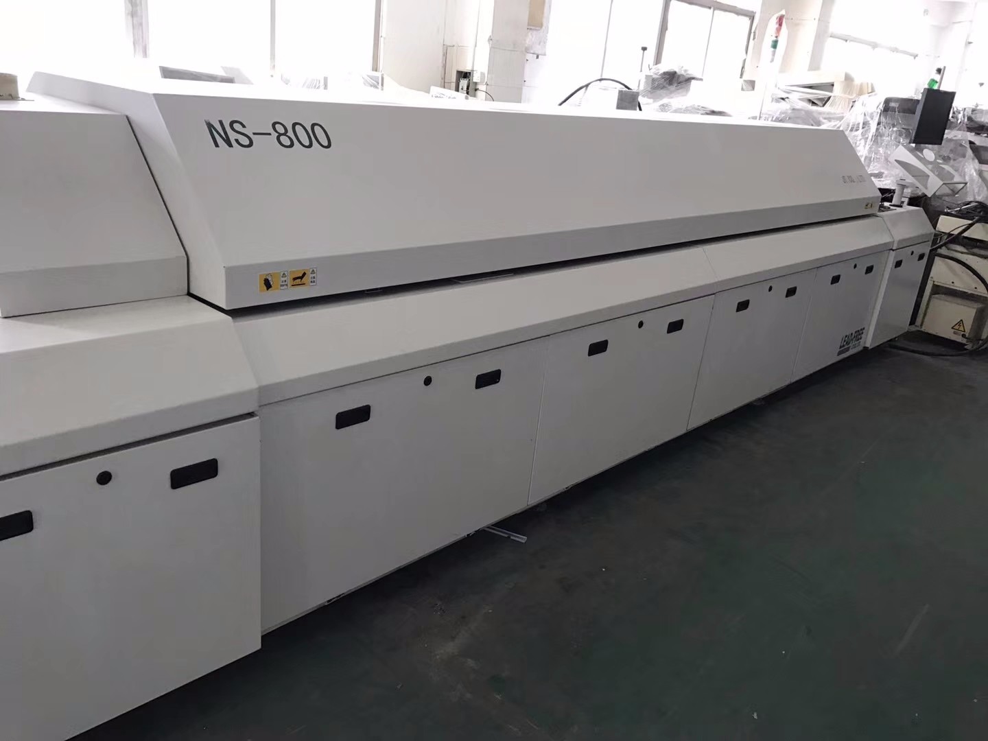 回流焊爐內部有一個加熱電路,將空氣或者氮氣加熱到一定的溫度后吹到已經貼好元器件的電路板至上,靠熱氣流對焊點的作用,膠狀的焊劑在一定的高溫氣流下進行物理反應達到SMD的焊接;使得元器件兩邊的焊接材料融化并與主板連結。